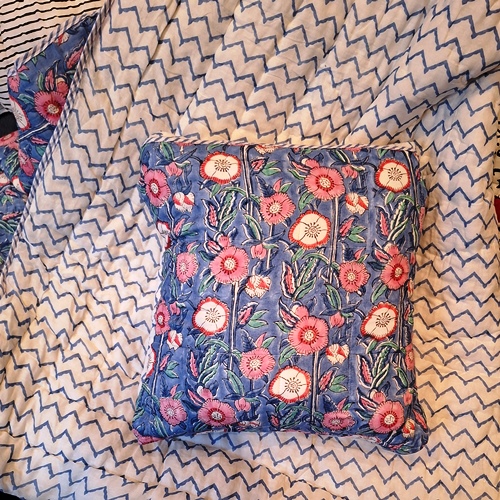 Cuddle up in a soft, cotton quillow. These bright and cheery quilt pillows are great for snuggling up under in front of the telly, and they fold up to look like cushions when not in use. Quillows are magic quilts -great for using as a warm blanket which turns into a pillow when not in use, helping to save on the heating bills and looking pretty. Have them in the sitting room; take them on picnics; keep one in the car for a comfortable back support and you have an emergency blanket – they really are versatile. No more extra bedding to fill your storage cupboard for guests - just scatter these quillows on sofas, and beds, childrens' rooms, holiday homes or caravans and whip them open when needed. Quillows are available in two sizes: REGULAR and LARGE. A REGULAR QUILLOW is ideal for children or for the sofa, they are great as a cushion and easy to throw open when you need warmth. The size of a regular quillow as a cushion is 17"X17" and when it is opened up, it becomes a quilt measuring approximately 56"X45". A LARGE QUILLOW works well on the sofa as well as on a single bed. As a cushion, it measures 25"X25" which magically opens up to become a quilt approximately 56"X90", which is enough for two people to share on the sofa, or as extra single bedding for guests. Quillows make wonderful gifts and ideal University going-away presents too. .